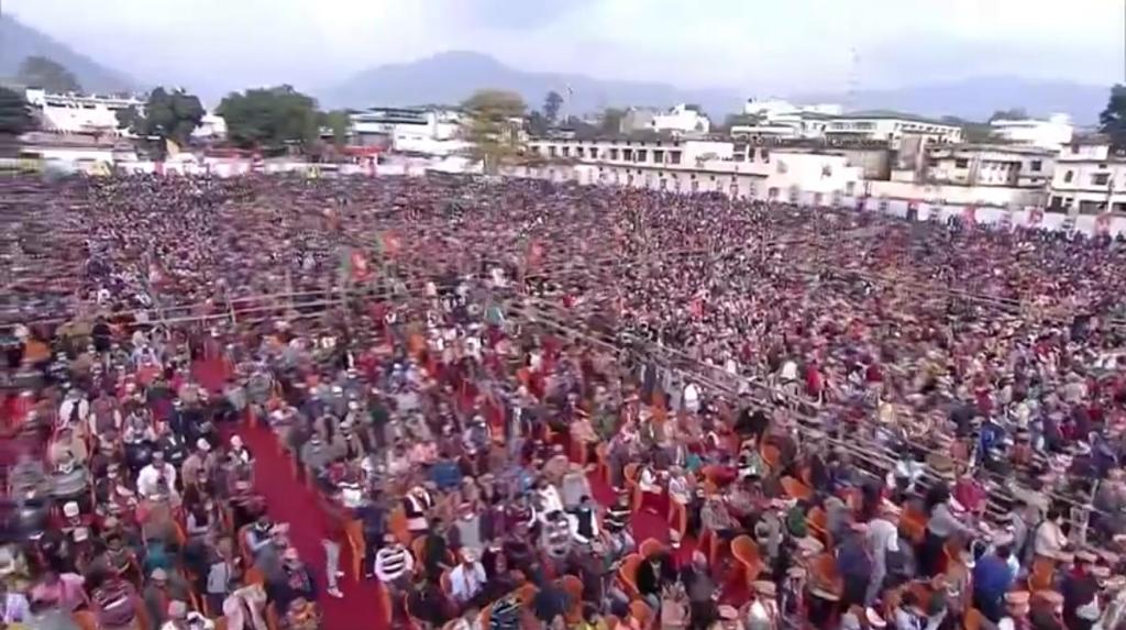 प्रधानमंत्री नरेन्द्र मोदी ने कुमाऊंनी बोली में जनसभा में मौजूद लोगों को नए साल और मकर संक्राति पर मनाए जाने वाले घुघुति पर्व की बधाई दी।